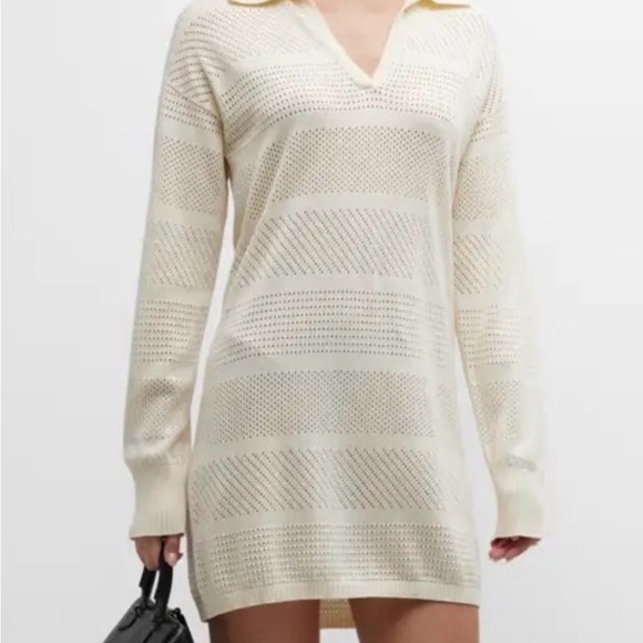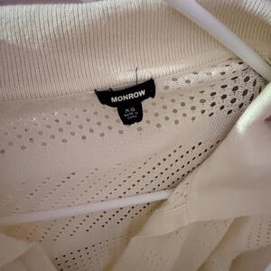 Elegant ivory knit top with perforated design. Ideal for layering.