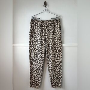 Monrow Leopard Print Cotton Raw Hem Crop Pull on Pants