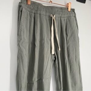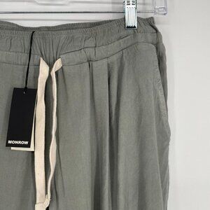 Monrow Linen Blend Track Pants Drawstring Tapered Leg Sage Green NWT Size XS
