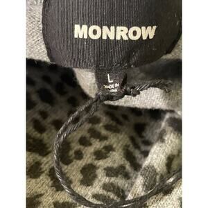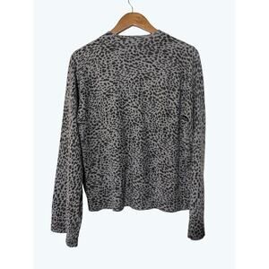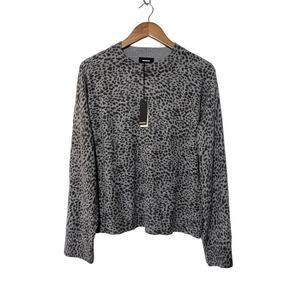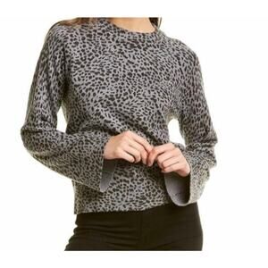 Monrow Mini Leopard Mock Neck Cashmere Blend Sweater Grey Black NWT Large