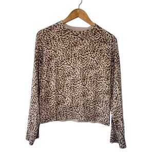 Monrow Mock Neck Cotton Cashmere Leopard Leo Print Belled Long Sleeve Sweater XS