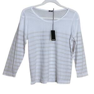 Monrow NWT Cream Sheer Beige Stripe Boatneck Frenchie 3/4 Sleeve Tee size Medium