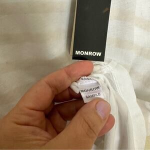 Monrow NWT Cream Sheer Beige Stripe Boatneck Frenchie 3/4 Sleeve Tee size Medium Boatneck