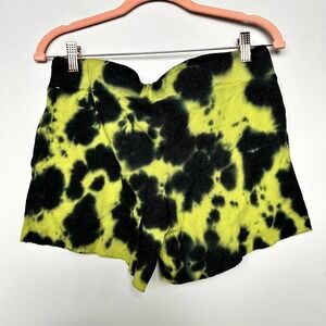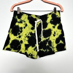 Monrow NWT Tie Dye Drawstring Raw Edge Vintage Sweat Shorts Neon Green Sz Small
