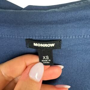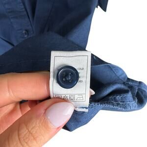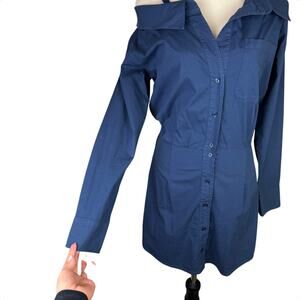 Monrow Navy Stretch Poplin Cotton Blend Button Up Long Sleeve Mini Shirt Dress