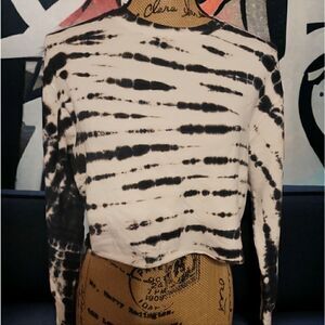 Casual cropped pulllover with a whimsical tie-dye effect. Crewneck Long sleeves Slip-on styling Cotton/rayon/spandec/rayon/spandex Machine wash