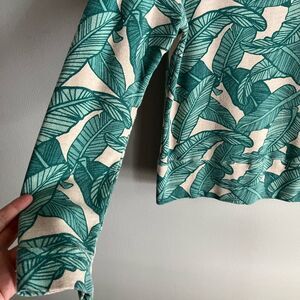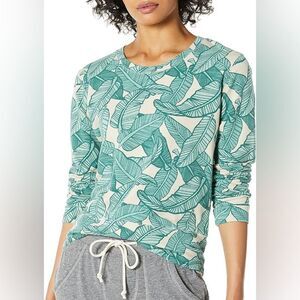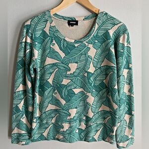 Monrow Palm Leaf Sweatshirt Size M Green Beige Crewneck Pullover Tropical Print