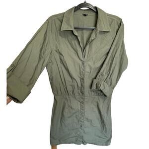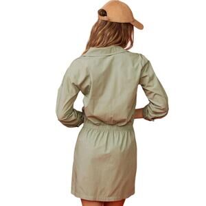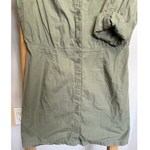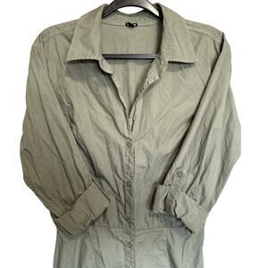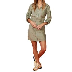 Monrow Poplin Shirt Dress Collared Rolled Up Sleeves In Laurel Green Size Large