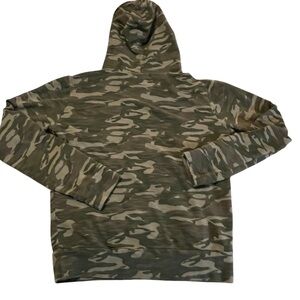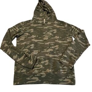 Monrow Pullover Hooded Sweatshirt Top Green Camo XS Lounge soft cozy athleisure