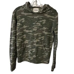 Monrow Pullover Hoodie Sweatshirt Green Camo XS Lounge soft cozy