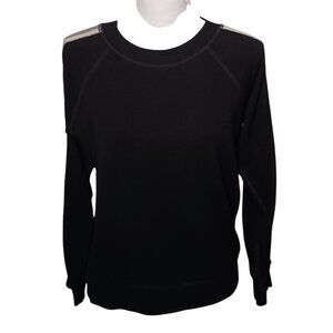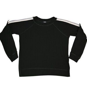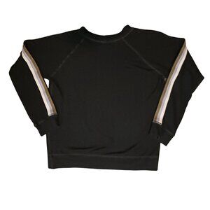 Monrow Raglan Crewneck Sweater Size XS Black w/ Embroidered Stripes Down Arms