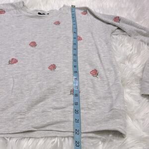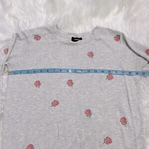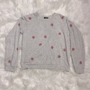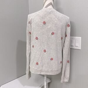 Monrow Raglan pull over floral embroidered grey and pink size small