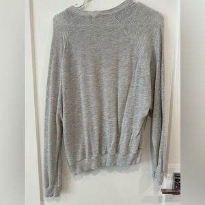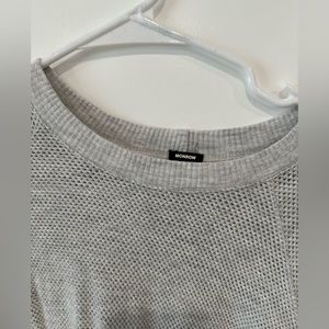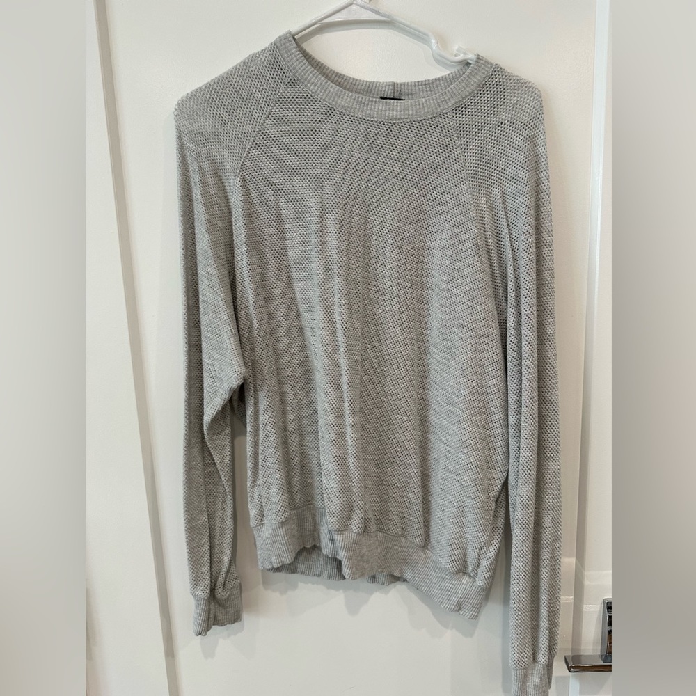 Monrow Raglan waffle knit sweatshirt in size small in excellent used condition. Only worn a few times. Color is grey, and the material is an open weave that means you can see a bit through the sweater.