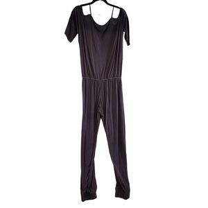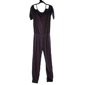 Monrow Rayon Jogger Jumpsuit 3/4 Sleeve Cold Shoulder Grey with Pockets sz Md