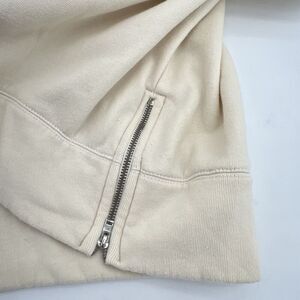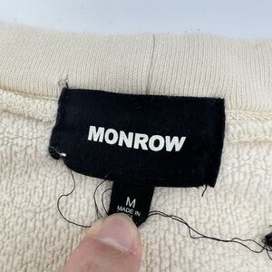 This Monrow sweatshirt in off-white is a cozy addition to your activewear collection. The long sleeve pullover has a zip closure and reversible design. It features side zips and is made of a mixture of polyester and cotton with a fleece fabric type. The size is medium and it is suitable for women. The brand is Monrow and it is a regular size type. It is perfect for a casual day out or for your workout routine.