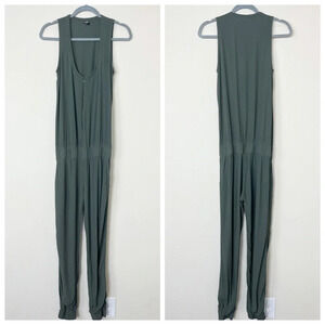 Monrow × Revolve Crepe Zip Jumpsuit Camo Green Lightweight Pockets Jumper