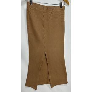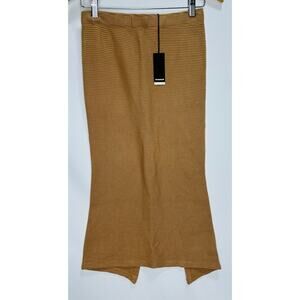 Monrow Ribbed Stretch Cotton Midi Pencil Skirt in Camel Brown | Size Small | NWT