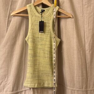 This stylish yellow ribbed tank top is perfect for casual outings. Its soft fabric ensures comfort all day long.