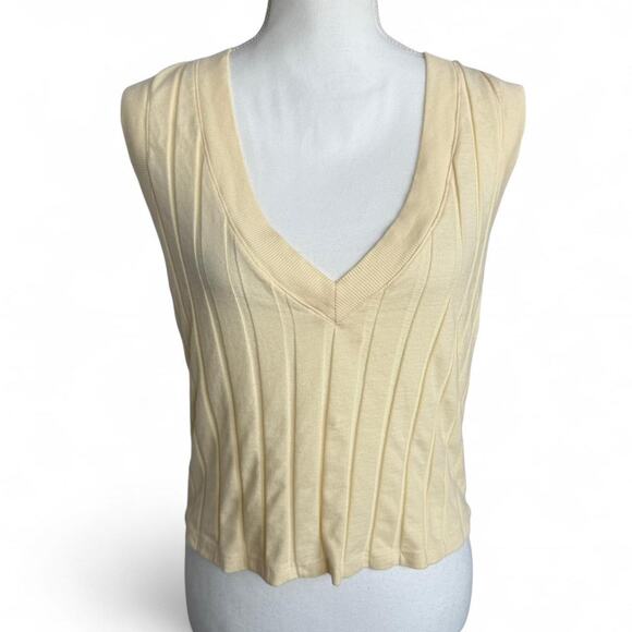 Monrow Ribbed V-Neck Sleeveless Knit Top Cream Ivory Women’s NEW Size Medium