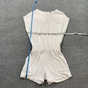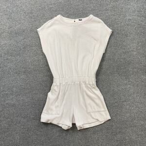 Monrow Romper Womens S Small White Cotton Blend Terry Cloth Cap Sleeve Pockets
