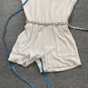MONROW ROMPER WOMENS S SMALL WHITE COTTON BLEND TERRY CLOTH CAP SLEEVE POCKETS