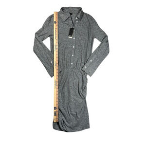 Monrow Side Ruched Shirt Dress Size XS Button Front Long Sleeve Collar Grey NWT