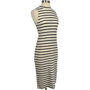 Monrow Size M Striped Midi Dress White Black Sleeveless Mock Neck Knee Length