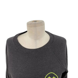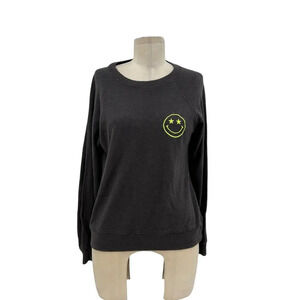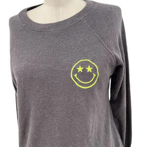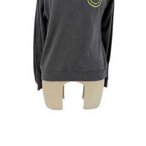 Monrow Smiley Face Pullover Long Sleeve Charcoal Gray Neon Green Size Small