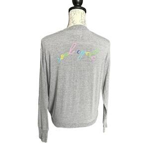 Monrow + Soul Cycle Rainbow Embroidered Crewneck Lightweight Gray Shirt Small
