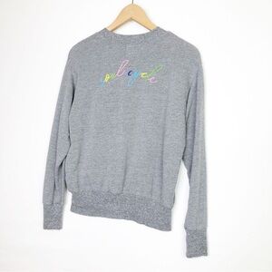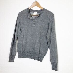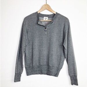 Monrow & Soul small Gray Henley logo embroidered sweatshirt