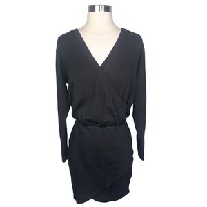 Monrow Supersoft Fleece Crossover V-Neck Mini Dress - Size Medium - Black
