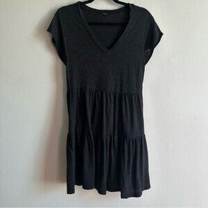 Monrow Sz S Dark Grey Tiered Cotton Blend Mini Dress