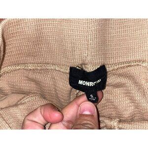 Monrow Tan Drawstring Waist & Pockets Waffle Knit Lounge Pants Women's Size S