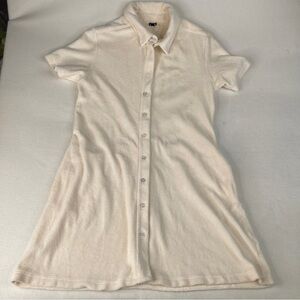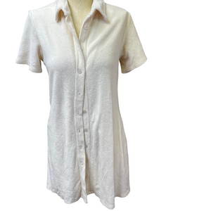 Monrow Terry Button Front Shirt Dress Pearl Size Small