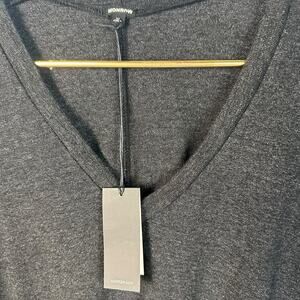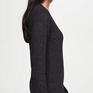 Monrow Textured Tri-Blend Fitted Long Sleeve V Neck Tee T-Shirt Medium Gray