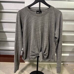 Monrow Tie Front Sweatshirt Gray Relaxed Crewneck Athleisure Lounge Cozy
