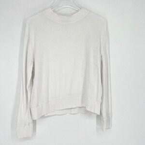 Monrow Top Womens M Thermal Waffle Knit Mock Neck White Long Sleeve Shirt