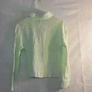 The solid pattern, cropped style, and green color make it a great addition to any beach-themed outfit. It's a women's size small and has a classic fit, with casual sleeves and button accents. This button-up top is perfect for any occasion, whether you're looking for a stylish beach outfit or a casual day out.