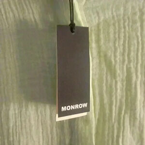 Elevate your beach style with this Monrow top in a beautiful green color. The twist front and button closure add a touch of sophistication, while the long sleeves and collared neckline keep it classic. Made of 100% cotton, this lightweight and stretchy top is perfect for the summer and spring seasons.