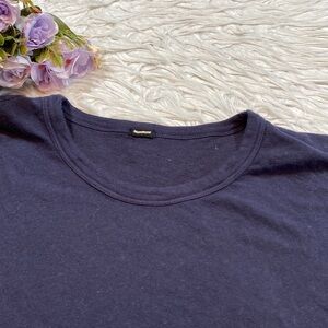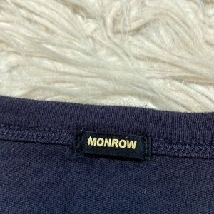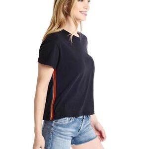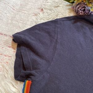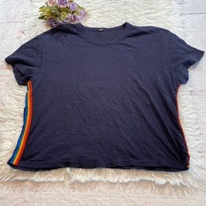 Monrow navy blue colored vintage crewneck rainbow stripes side tee. This tee is in great used condition