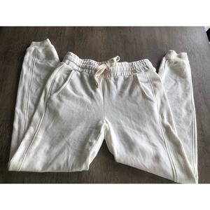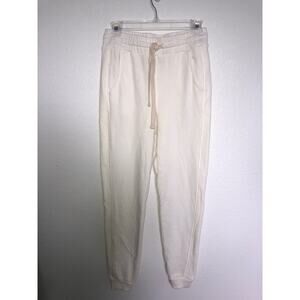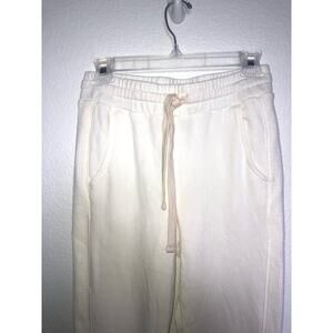 Monrow Winter White Drawstring Joggers with Ribbed Leg Stripe - XS