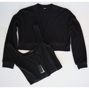 Monrow Women's Sz S Black French Terry Tank Top & L/S Cropped Shirt 2-Pc Set