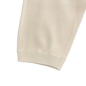 Monrow Womens Beige Knit Jogger Pants Ribbed Cuffs & Drawstring Waist Sz Large