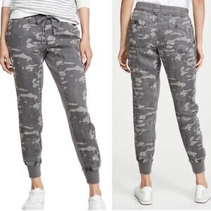 Monrow Womens Camo Jogger w Contrast Rib Linen