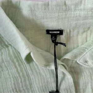 Monrow Women's Gauze Relaxed Blouse Faded Lime Green Size Medium NWT