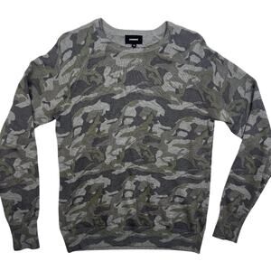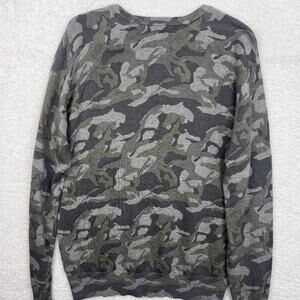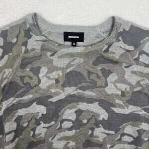 Monrow Women's Gray Green Camo Raglan Shirt Long Sleeve Sweater Medium
