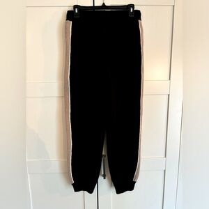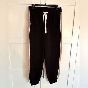 Monrow Women's Jogger Sweatpants with Pockets Size Medium Black with Tan Stripe