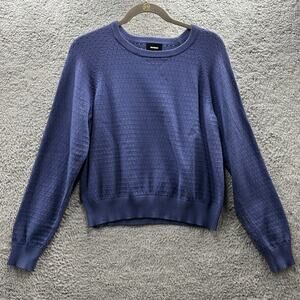 Monrow Women's Small Blue Knit Sweater Crew Neck Comfort Quiet Luxury