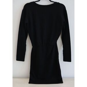 Monrow Women's Sz Small Black Supersoft Fleece Cross Over V Mini Dress