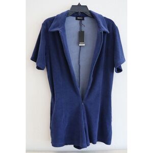 Monrow Women's Sz Small Navy Blue French Terry / Cotton Zip-Up Romper